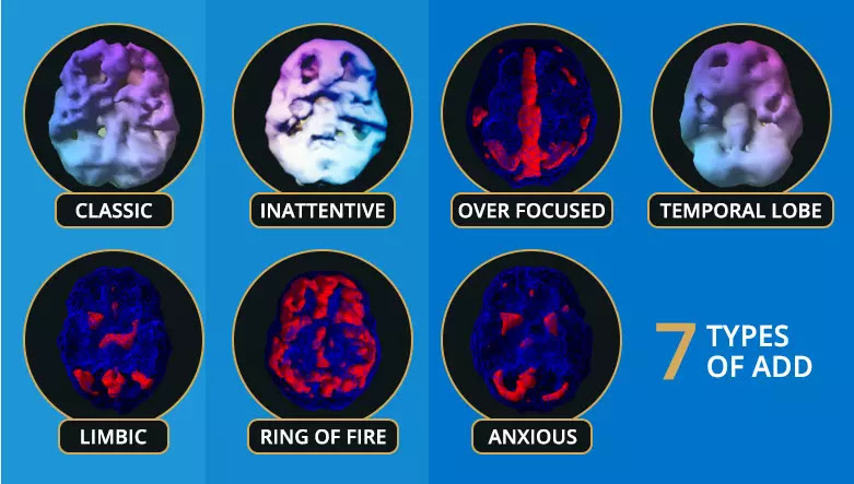 Le type 5 pourrait être résumé comme TDHA + dépression. La grosse différence entre ce type et la dépression pure c’est que la personne souffrant de dépression n’aura pas de problème pour utiliser ses lobes frontaux lorsqu’elle va se concentrer.