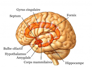 Le système limbique : partie grosse comme une noix située sous le noyau gris, qui injecte les émotions dans la pensée (un peu plus importante chez les femmes que chez les hommes). S’il est peu actif les pensées sont positives et pleines d’espoir, quand il est super actif, toutes les pensées sont placées au travers d’un filtre dépressif et négatif. Ce système comme les parties les plus profondes des lobes temporaux semblent stocker des souvenirs très chargés en émotions (positives comme négatives), et suivant notre vécu le filtre de base sera plus ou moins agréable. Cette partie du cerveau est aussi associée à notre capacité de créer des liens, à notre motivation, à la régulation du sommeil et de l’appétit, elle est puissante et les émotions générées sont difficiles à contrecarrer par la rationalisation.